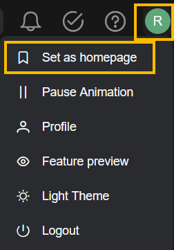 • Set a new home page using the Set as homepage menu item in a different Stellar Cyber page.