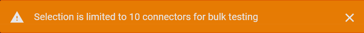 Using the check boxes, select up to 10 connectors to test in bulk. If you select more than 10 connectors, the following message is displayed and the Test button is no longer available.