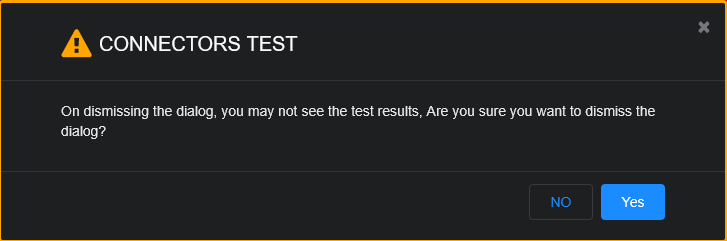 While tests are running, do not navigate away from the Connectors Test dialog as it may halt the testing process. The following message is displayed.