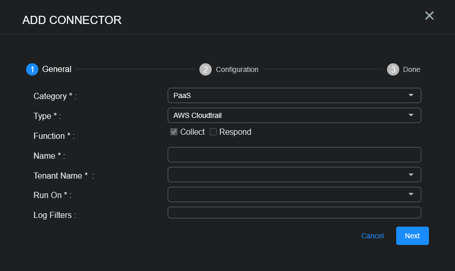 With the required information handy, you can add the AWS CloudTrail connector in Stellar Cyber: