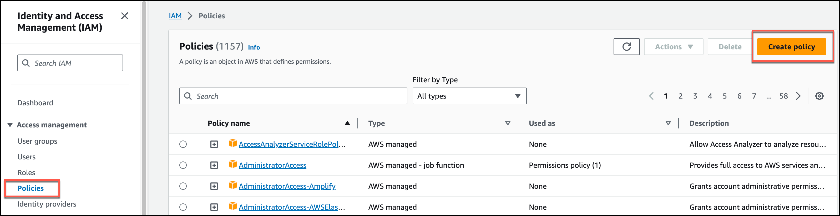 3. Choose Policies and then choose Create Policy.