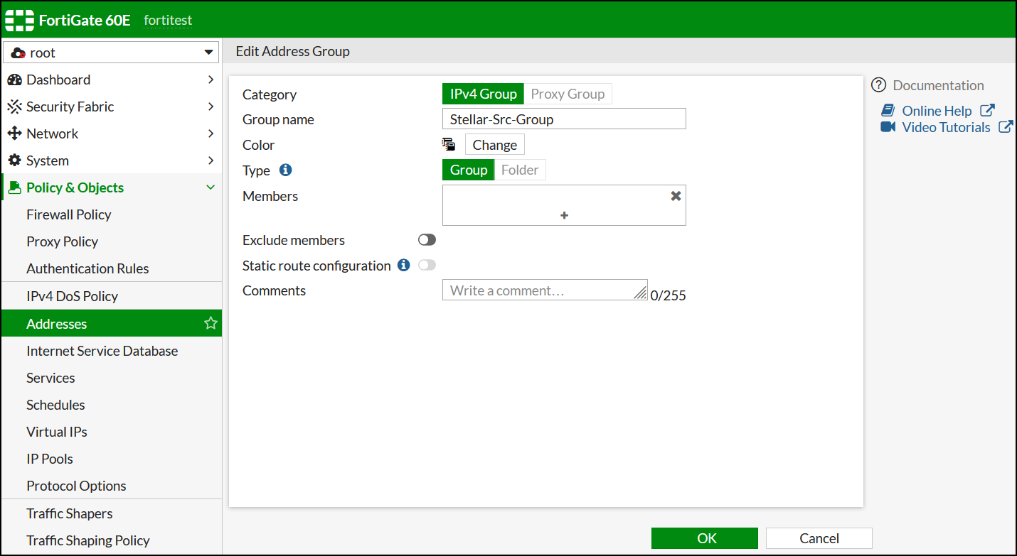 When there is a Block IP action from an alert and the direction is outbound, the IP address will be added in the Destination address group to the firewall (Stellar-Dst-Group in this example).