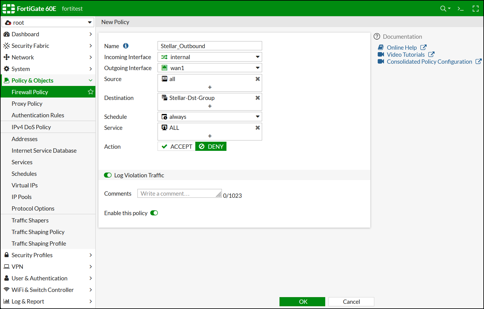 4. The second policy is an example of an Outbound Deny rule named Stellar_Outbound with the following settings: