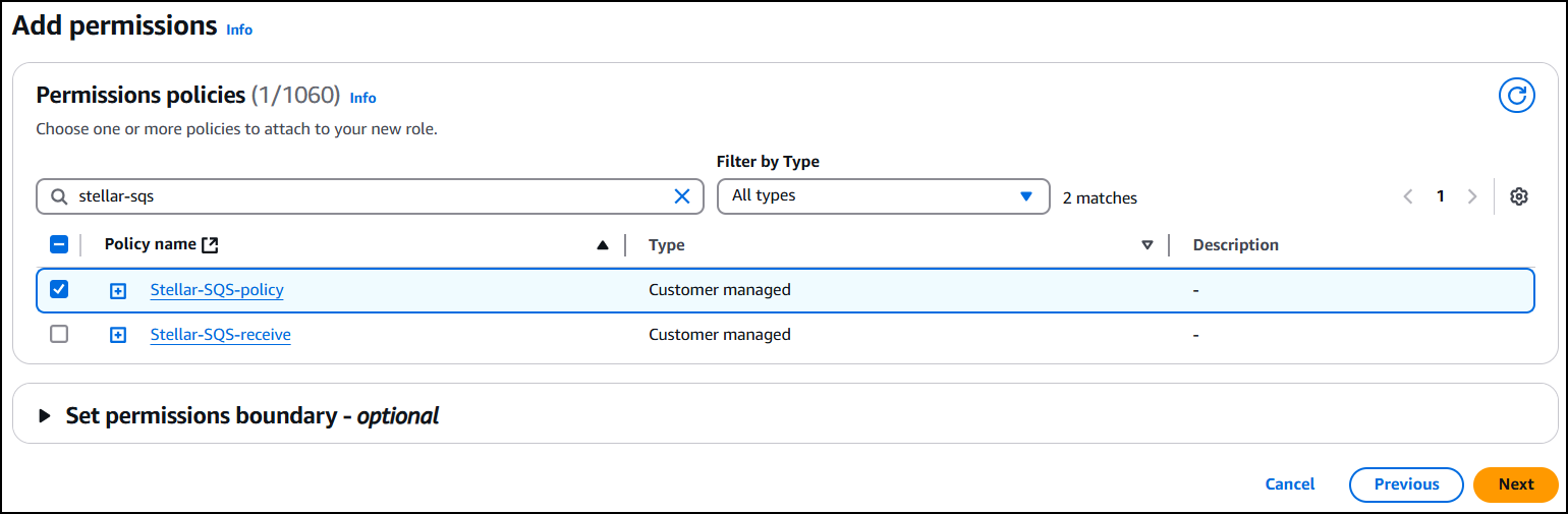 You need the following permissions to create the SQS queue: