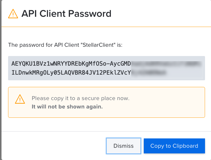 7. From the dialog that displays next, copy the API Client Password. Save this value for later use.