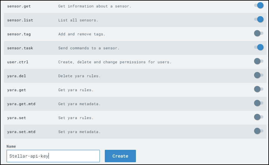 5. Enable the following permissions: sensor.get, sensor.list, and sensor.task.