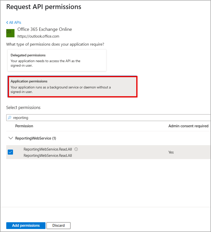 2. Search for and select ReportingWebService.Read.All.