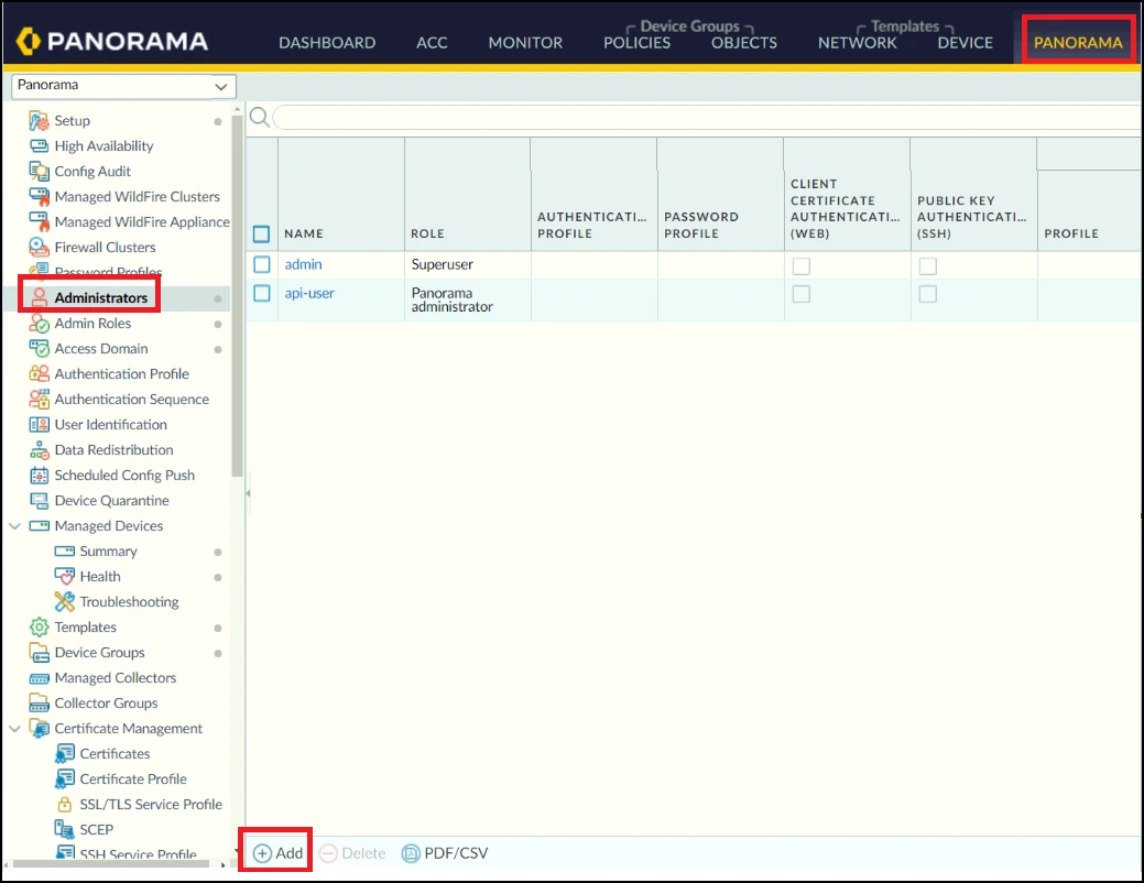 1. Under Panorama, select Administrators.