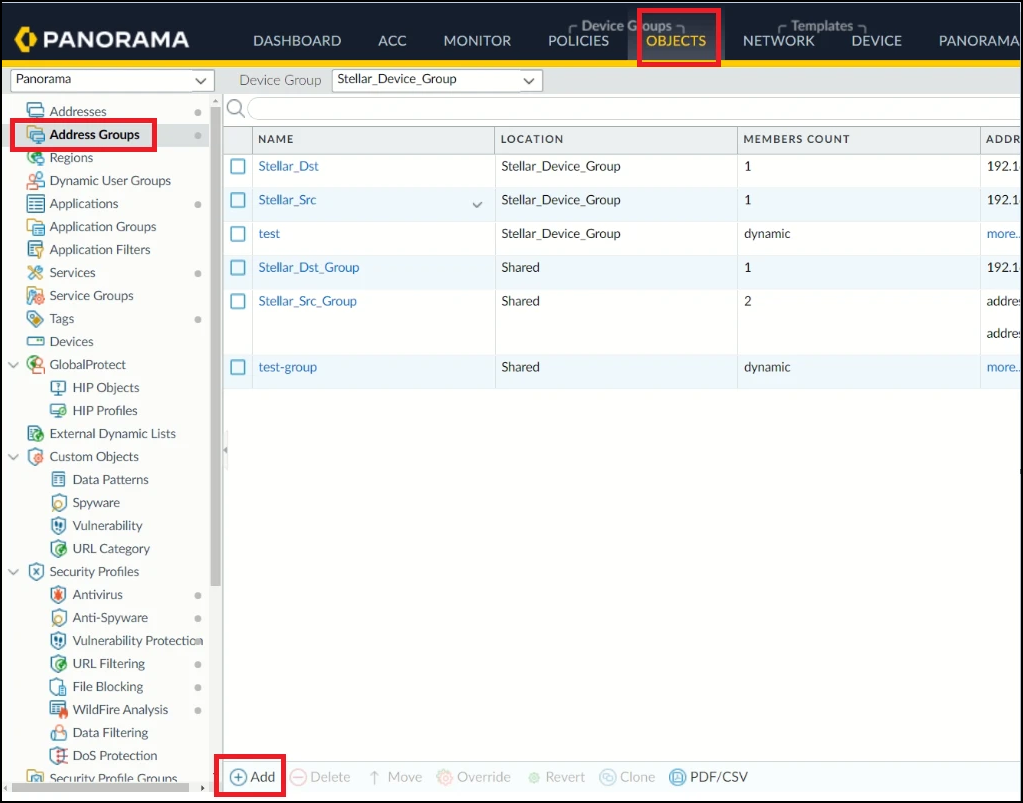 1. Under Objects, select Address Groups.