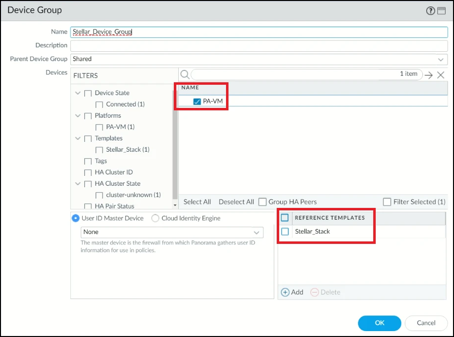 4. Check the Palo Alto firewall. In this example, the PA-VM firewall was added to Stellar_Device_Group.