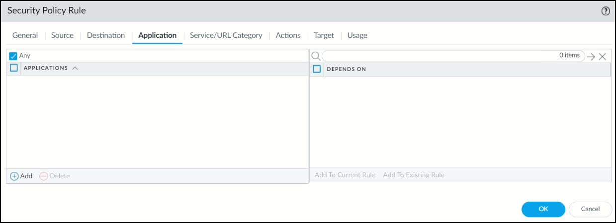 6. Under the Application tab, select Any.