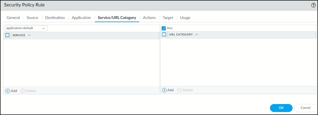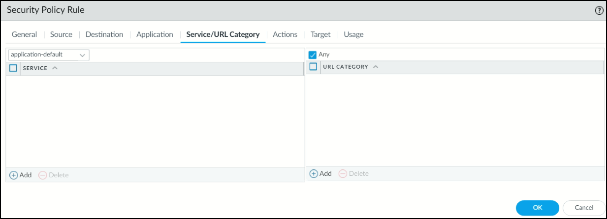 17. Under the Service/URL Category tab, select Any.