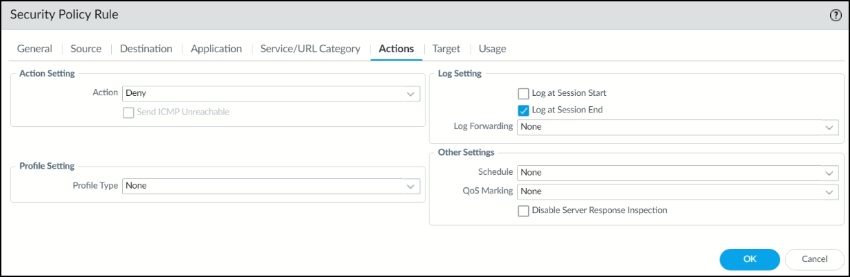 1. For the Action, select Deny.