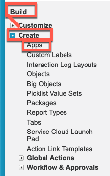 2. Select the menu option for s Build > Create > Apps.
