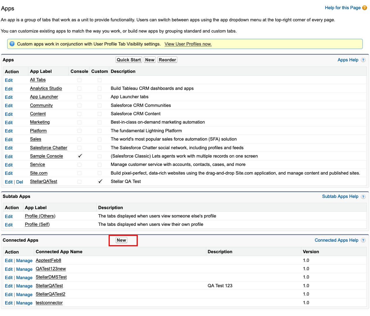 3. The app management panel displays. Locate the section for Connected Apps and click New.