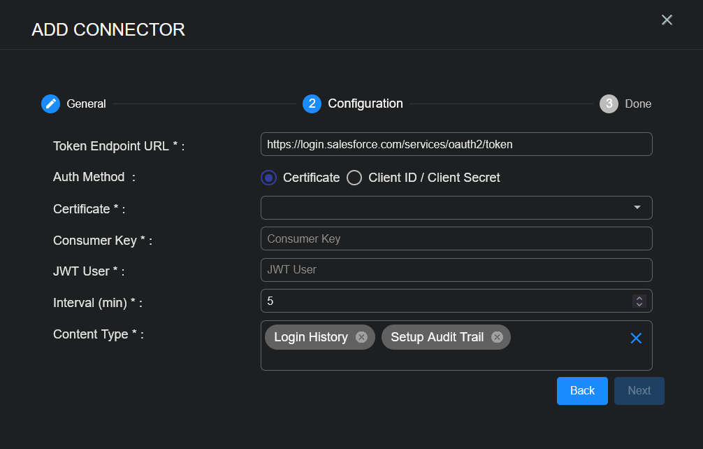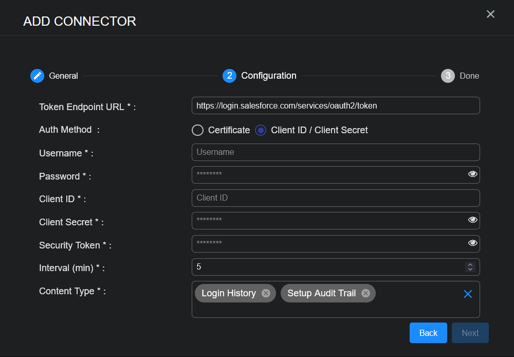 With the access information handy, you can add a Salesforce connector in Stellar Cyber: