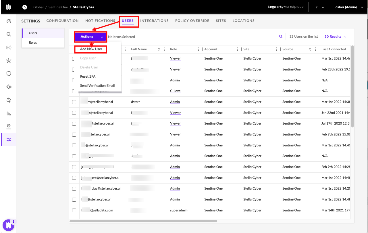 • To Collect, the SentinelOne User Account can have either the Viewer or Admin role. To Respond, the user Role must be Admin.