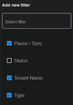 Select Tenant. You can filter by specific tenants, tenant groups, or all tenants.