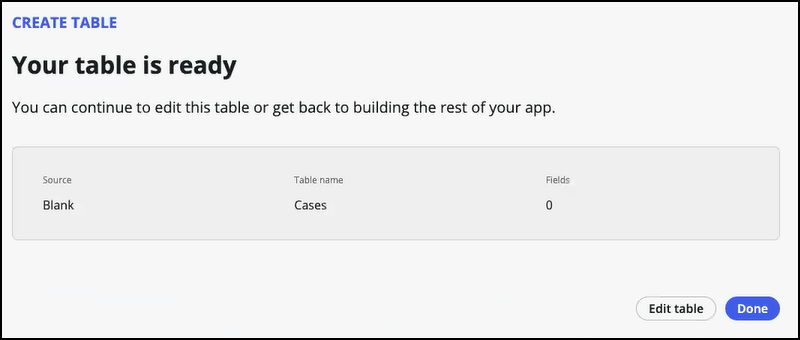 Enter the name of a Case database table in ServiceNow from which to collect data, then click Confirm to verify the database table. A message displays if the database table cannot be found or if fields in the database table cannot be found. To obtain table names, see Obtaining ServiceNow Table Names.