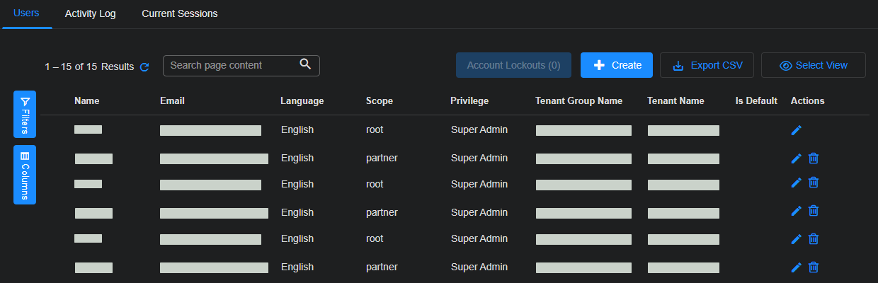 Partner users can see all other partner users with the same Tenant Group assigned. Similarly, partner users can create additional partner users to manage the same Tenant Group.