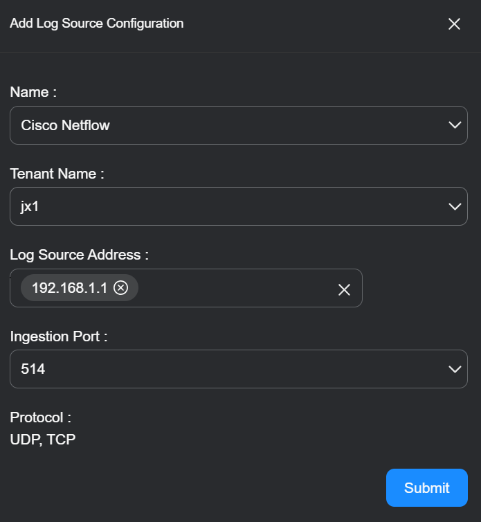6. Use the Ingestion Port drop-down list to specify whether this entry is for logs arriving on the standard syslog port of 514, the secure syslog port of 6514, or the secure HTTP port of 443.