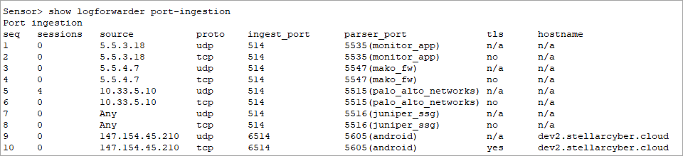 • The show logforwarder port-ingestion CLI command is still available in 4.3.6+ and provides additional information relative to 4.3.5.
