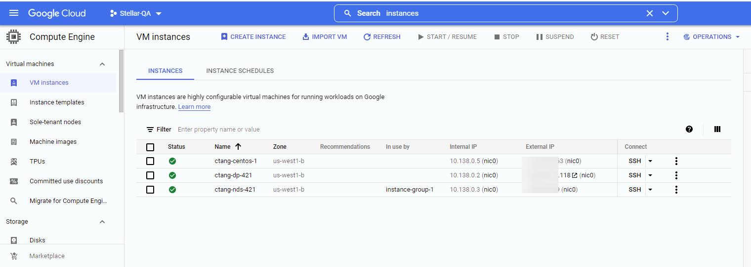 In this example, we will mirror traffic from the ctang-centos-1 instance to a Stellar Cyber NDS at ctang-nds-421. The sections below demonstrate how to set up this packet mirroring configuration.