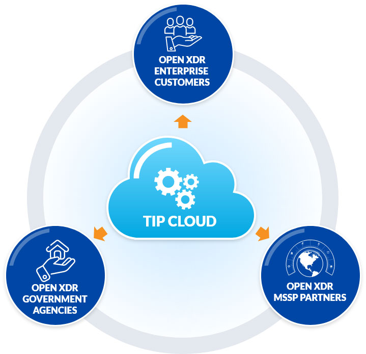 Once the feeds are curated, the Stellar Cyber TIP normalizes and prioritizes them before distributing them to all of the Open XDR platforms deployed by end users from enterprises, government agencies, and MSSP partners, as shown in the diagram below.