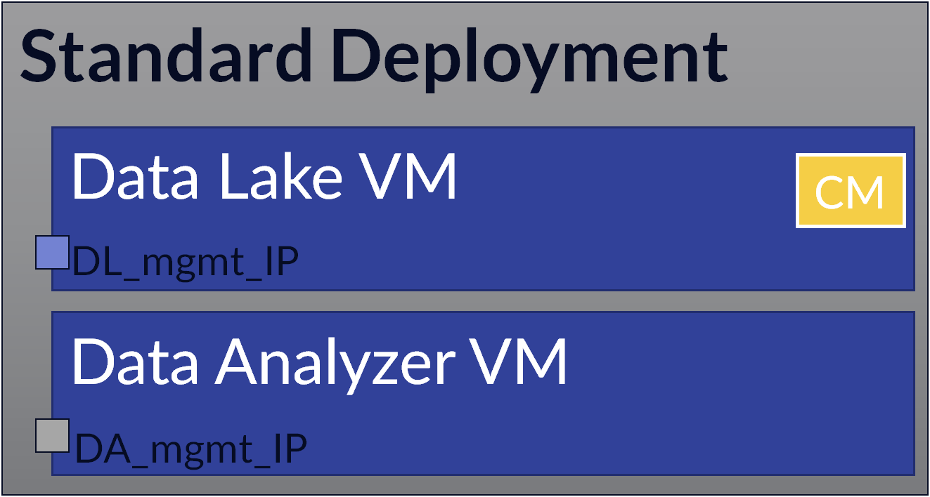 Standard – Standard deployments use one virtual machine for the Data Lake and another for the Data Analyzer and are supported for up to 250 GB of daily data ingestion (300 GB without multi-tenancy). This model also provides optional cluster support for deployment of additional DL and DA worker nodes as your needs increase.