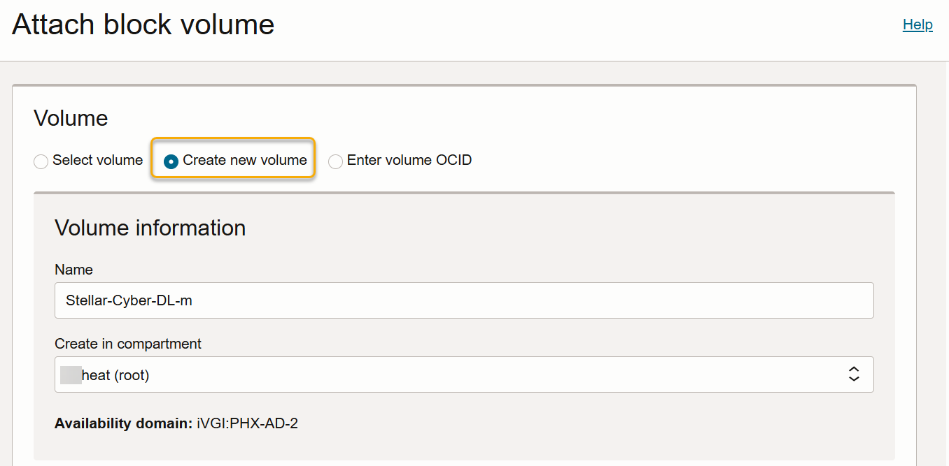 Choose the Compartment for the block volume. This should be the same compartment where you're creating the instance.