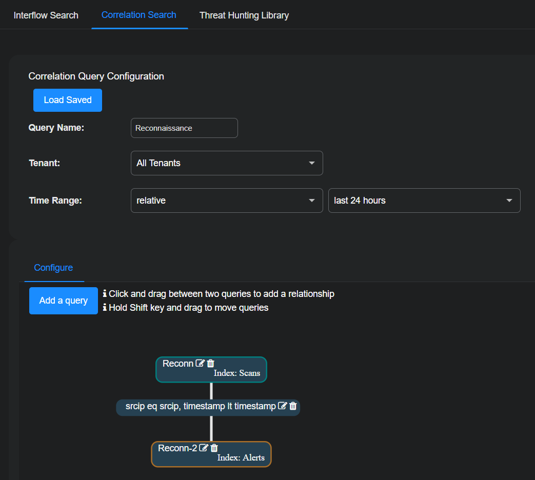 Click or tap and drag a line between the two queries, select Same Source IP and Query 2 happened after Query 1, and then Submit the relationship.
