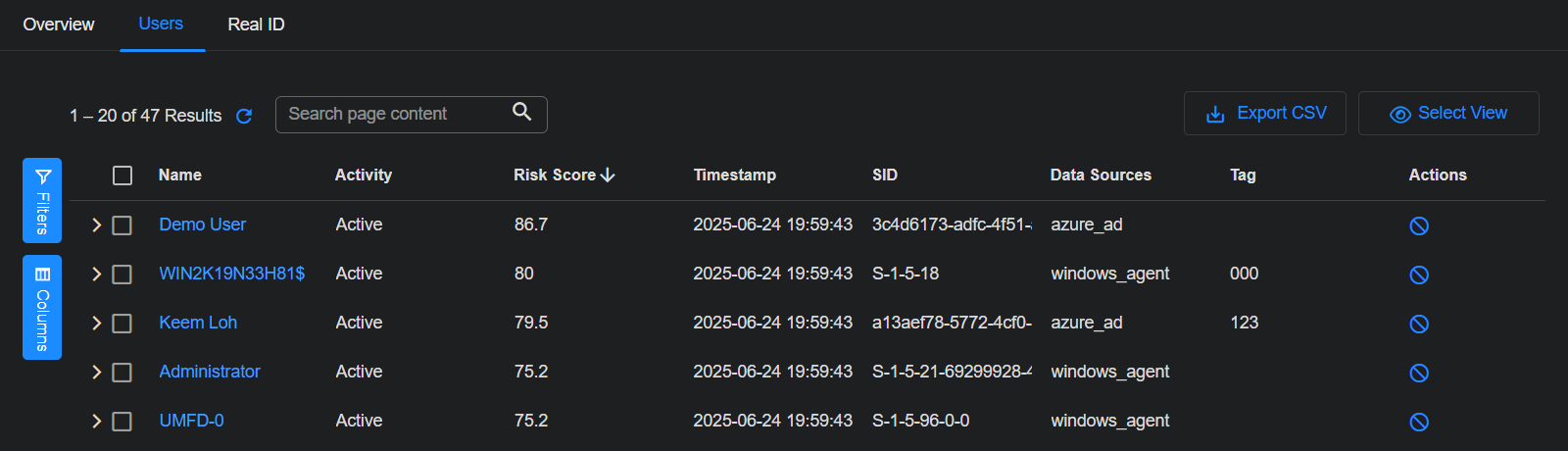 • Risk Score – The risk associated with the user.