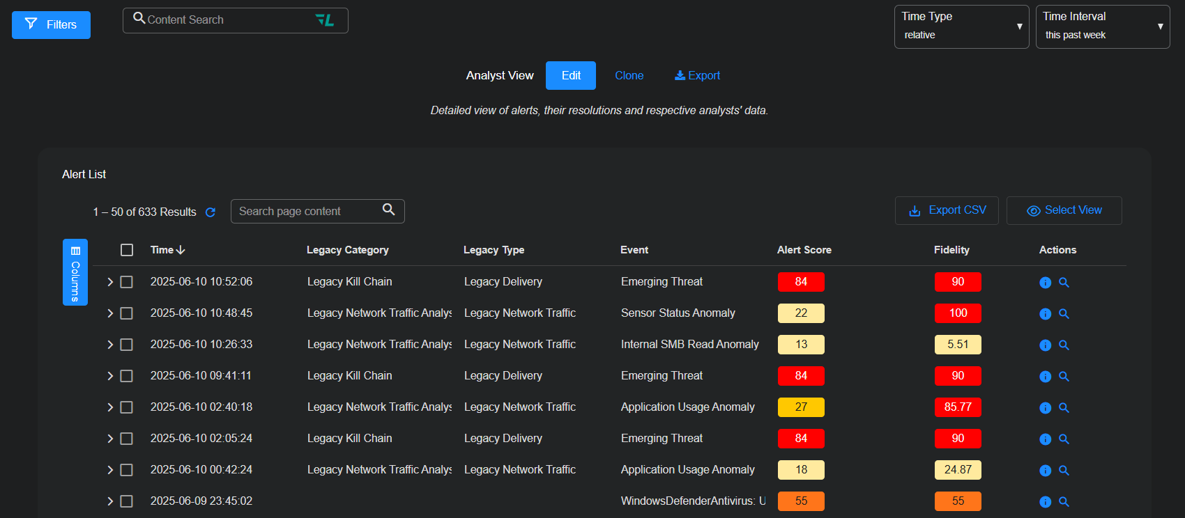The Dashboards | PREDEFINED | Analyst View provides a simple table listing all of the events in a specified time frame. It provides a simple view to make it easy for you to focus on the events that are important to you.